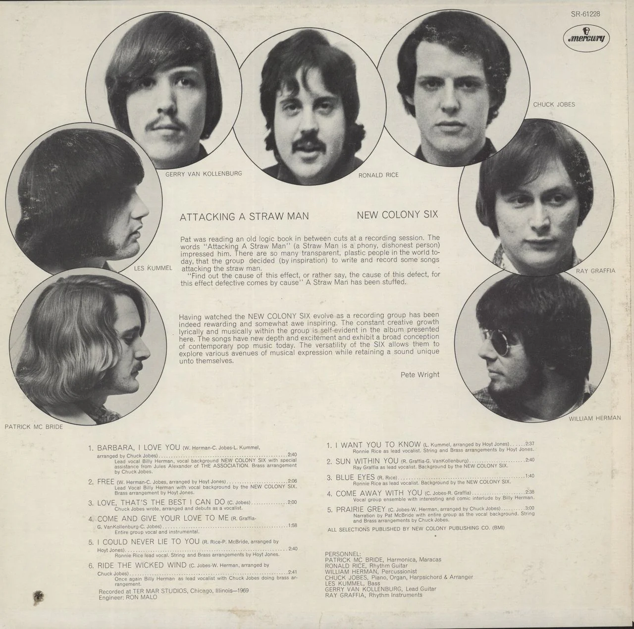 NEW COLONY SIX Attacking A Straw Man (Original 1969 US 11-track red Mercury label vinyl LP album, housed in a pasted picture sleeve. The sleeve carries some notable shelf/ringwear and has a small corner bump and deletion hole-punch, whilst thevinyl shows minimal signs of play SR-61228)